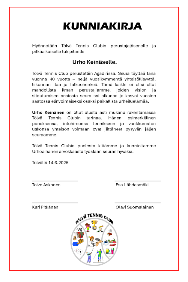 klo 20 Tölvä Tennis Club 40 vuotta illanvietto